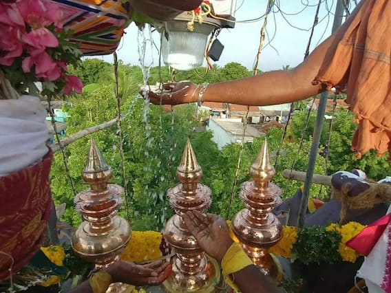 அதன் தொடர்ச்சியாக கோபுர கலசத்திற்கு பூஜிக்கப்பட்ட புனிதத் திட்டத்தால் சிறப்பு அபிஷேகம் நடைபெற்று, அதை தொடர்ந்து மூலவர் ஸ்ரீ காரிய காளியம்மன், ஸ்ரீ விநாயகர், ஸ்ரீ கருப்பண சுவாமி உள்ளிட்ட தெய்வங்களுக்கு பூஜிக்கப்பட்ட புனிதத் தீர்த்தத்தால் சிறப்பு அபிஷேகம் நடைபெற்றது.