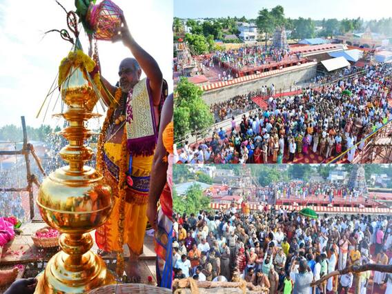 அங்கு வேத விற்பனர்கள் வேத மந்திரங்கள் ஓத மகா கும்பாபிஷேகம் நடைபெற்றது. காலை நடைபெற்ற இந்த கும்பாபிஷேகத்தை மயிலாடுதுறை மற்றும் இன்றி தமிழகத்தின் பல்வேறு மாவட்டங்களில் இருந்தும் பல்லாயிரக்கணக்கான பக்தர்கள் கலந்துகொண்டு தரிசனம் செய்தனர். தொடர்ந்து மூலவருக்கு மகா அபிஷேக தீபாராதனை நடைபெற்றது. கோயில் கும்பாபிஷேகம் பாதுகாப்பு பணியில் மத்திய மண்டல ஐஜி கார்த்திகேயன், டிஐஜி ஜெயசந்திரன் மேற்பார்வையில் 60 கண்காணிப்பு கேமராக்கள் பொருத்தப்பட்டு மயிலாடுதுறை காவல் கண்காணிப்பாளர் மீனா, திருவாரூர் ஆகிய இரண்டு மாவட்ட காவல் கண்காணிப்பாளர், அடங்கிய காவல்துறையினர் 508 பேர் பாதுகாப்பு பணியில் ஈடுபட்டுள்ளனர்.