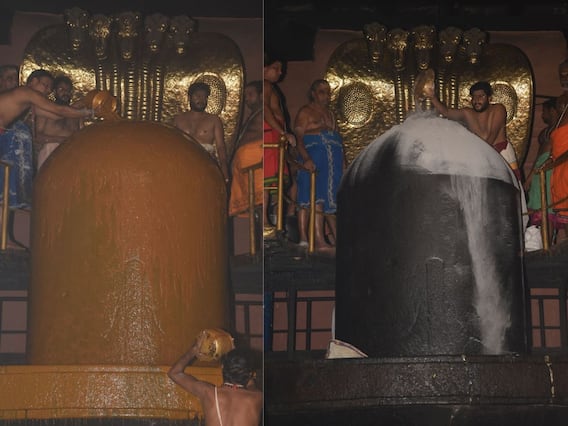 இதனிடையே, பெருவுடையார், பெரியநாயகி அம்மனுக்கு தருமபுரம் ஆதீனம் சார்பில் பால், தயிர், வெண்ணெய், நெய், சந்தனம், மஞ்சள், தேன், பஞ்சாமிர்தம், விபூதி, வில்வம், தைலக்காப்பு, சாம்பிராணி தைலம், நவகவ்யம், திரவியப் பொடி, வாசனைப் பொடி, பஞ்சாமிர்தம், இளநீர் உள்பட 48 வகையான பொருள்களால் பேரபிஷேகம் செய்யப்பட்டது. இதைத்தொடர்ந்து பிற்பகலில் பெருந்தீப வழிபாடு நடைபெற்றது. பின்னர், மாலையில் திருமுறைப் பண்ணிசையும், வெள்ளி ரிஷப வாகனத்தில் பெருவுடையார், பெரியநாயகி திருவுருவச் செப்புத் திருமேனிகள் திருவீதி உலாவும் நடைபெற்றன.