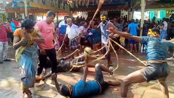 துடைப்பத்தால் அடித்துக் கொள்ளும் வினோதமான நிகழ்ச்சி