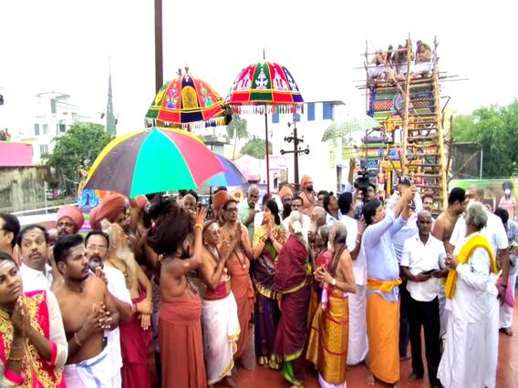இதனை ஒட்டி காவிரியில் இருந்து யானை மேல் தீர்த்த குடங்களில் தண்ணீர் எடுத்து வரப்பட்டு புனித கடங்களில் நிரப்பப்பட்டது. தொடர்ந்து, 14 யாகசாலை குண்டங்கள் அமைக்கப்பட்டு 35 சிவாச்சாரியார்கள் மந்திரம் ஓத நேற்று முன்தினம் முதல் கால யாகசாலை பூஜைகள் தொடங்கி நான்கு கால யாகசாலை பூஜைகள் நடைபெற்றது. இன்று காலை நான்காம் கால யாகசாலை பூஜைகள் நிறைவடைந்ததை தொடர்ந்து மகா பூர்ணாகுதியுடன் மங்கள வாத்தியங்கள் முழங்க கடம் புறப்பாடு நடைபெற்றது. புனித நீர் அடங்கிய கடங்கள் ஊர்வலமாக எடுத்துவரப்பட்டு ராஜகோபுரங்கள், சுவாமி, அம்பாள் கோபுர கலசங்கள் உள்ளிட்டவற்றிற்கு ஊற்றி கும்பாபிஷேகம் நடைபெற்றது.