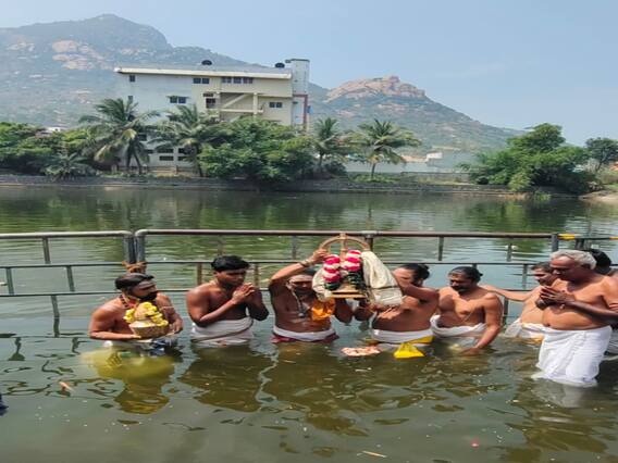திருவண்ணாமலை அண்ணாமலையார் கோவிலில் சித்திரை முதல் பங்குனி மாதம் வரையிலான 12 மாதங்களில் நடக்கும் தீர்த்தவாரி நிகழ்ச்சிகளும் ஒன்றாகும். திருவண்ணாமலை ஈசானியகுளம், அய்யங்குளம், தாமரைகுளம், கலசபாக்கத்தில் செய்யாறு, மணலூர்பேட்டையில் தென்பெண்ணை ஆற்றில் நடைபெறும் தீர்த்தவாரி நிகழ்ச்சிகளில் அண்ணாமலையார் கலந்துகொள்வார். அதன்படி, இன்று திருவண்ணாமலை நகரில் உள்ள ஈசானியகுளத்தில் தைப்பூசத்தை முன்னிட்டு தீர்த்தவாரி நிகழ்ச்சி நடைப்பற்றது.இதையொட்டி கோவிலில் அண்ணாமலையாருக்கு சிறப்பு அபிஷேகம் நடைபெற்றது. பின்னர் சுவாமிக்கு சிறப்பு அலங்காரத்தில் மேள தாளங்கள் முழங்க கோவிலில் இருந்து ஈசானியகுளத்திற்கு புறப்பட்டு வந்தார். அதனைத்தொடர்ந்து ஈசானிய குளத்தில் தீர்த்தவாரியில் அண்ணாமலையார் சூல ரூபத்திற்கு சிவாச்சாரியார் வேத மந்திரங்கள் முழுங்க சந்தன அபிஷேகம், விபுதி அபிஷேகம், பால் அபிஷேகம், தயிர் அபிஷேகம் பல மூலிகைகளான அபிஷேகங்கள் நடைப்பெற்று சிறப்பு பூஜை செய்தனர்.