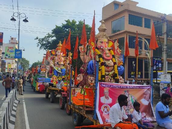 நாடு முழுவதும் விநாயகர் சதுர்த்தி மிக விமரிசையாக கொண்டாடப்பட்டது. சேலம் மாவட்டத்தில் 2,000 இடங்களில் விநாயகர் சிலைகள் வைக்கப்பட்டது. மூன்றாம் நாளான இன்று சேலம் மாவட்டத்தில் பல பகுதிகளில் வைக்கப்பட்டிருந்த விநாயகர் சிலைகள் கரைக்கும் நிகழ்ச்சி பல்வேறு இடங்களில் நடந்து வருகிறது. இந்து முன்னணி அமைப்பின் சார்பில் சேலம் மாநகர் பகுதியில் வைக்கப்பட்ட விநாயகர் சிலைகள் கரைக்கும் நிகழ்ச்சி சேலம் எல்லை பிடாரியம்மன் திருக்கோயிலில் இருந்து தொடங்கியது. இந்த ஊர்வலத்தினை இந்து முன்னணி அமைப்பினர் கொடியசைத்து தொடங்கி வைத்தனர். விநாயகர் சதுர்த்தி ஊர்வலம் சேலம் எல்லை பிடாரியம்மன் கோயில் அருகே தொடங்கி வின்சென்ட், அஸ்தம்பட்டி, சின்னத்திருப்பதி வழியாக கன்னங்குறிச்சி ஏரி சென்றடையும். விநாயகர் சதுர்த்தி ஊர்வலத்திற்கு சேலம் மாநகரம் காவல் ஆணையாளர் விஜயகுமாரி தலைமையில் ஆயிரக்கணக்கான காவல்துறையினர் பாதுகாப்பு பணியில் ஈடுபட்டனர்.