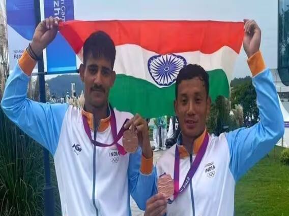 இன்று நடைபெற்ற ஆசிய விளையாட்டுப் போட்டியில் ஆடவர் கேனோ 1000 மீட்டர் இரட்டையர் போட்டியில் இந்தியாவின் அர்ஜூன் சிங் மற்றும் சுனில் சிங் ஜோடி வெண்கலப் பதக்கம் வென்றது. இந்திய ஜோடி 329 வினாடிகள் எடுத்து மூன்றாவது இடத்தைப் பிடித்தார். இதன்மூலம், 3:53 என்ற கணக்கில் வெற்றி பெற்றது. ஆசிய விளையாட்டு வரலாற்றில் 29 ஆண்டுகளுக்குப் பிறகு படகோட்டுதல் போட்டியில் இந்தியா பதக்கம் வென்றுள்ளது.