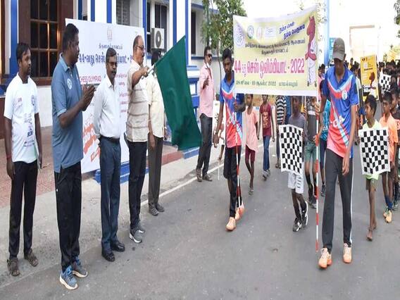 44வது செஸ் ஒலிம்பியாட் போட்டி மாமல்லபுரத்தில் நடைபெறவுள்ளதை முன்னிட்டு திருவாரூரில் பள்ளி மாணவர்கள் பங்கேற்ற மினி மாரத்தான் ஓட்டத்தை மாவட்ட வருவாய் அலுவலர் தொடங்கி வைத்தார்