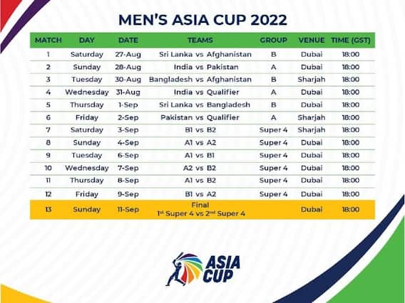 Asia Cup 2022 Schedule: 15வது ஆசிய கோப்பை கிரிக்கெட் போட்டிக்கான போட்டி அட்டவணையினை பிசிசிஐ தலைவர் ஜெய்ஷா வெளியிட்டுள்ளார். இந்தியா மற்றும் பாகிஸ்தான் ஆகஸ்ட் 28ம் தேதி மோதவுள்ளன.