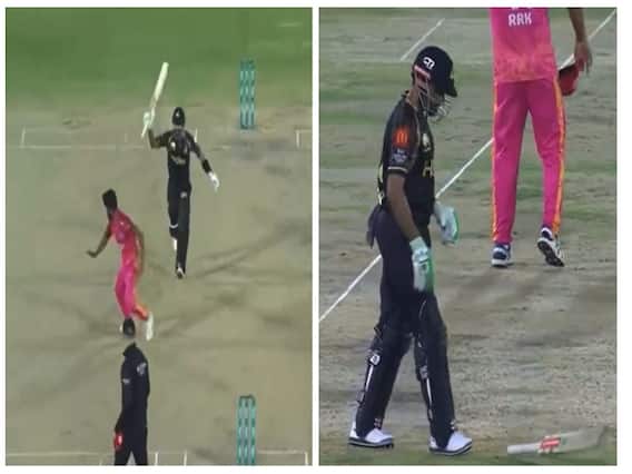 போட்டி நடைபெற்றுக் கொண்டிருந்தபோது இஸ்லாமாபாத் அணியின் பந்துவீச்சாளர் ஹசன்அலி பாபர் அசாமிற்கு பந்து வீசினார். அவரது பந்துவீச்சை அடித்துவிட்டு பாபர் அசாம் 2 ரன்களுக்கு ஓடினார். அவர் ஓடும்போது ஹசன் அலி, வீரர்கள் ரன் எடுக்க ஓடும் பாதையில் பந்துவீசிவிட்டு வந்த வேகத்தில் அமர்ந்திருந்தார்.