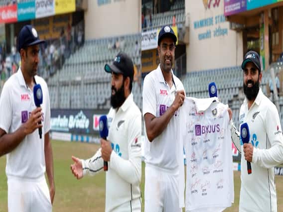 இந்தப் பேட்டியின் இறுதியில் இந்திய அணியின் வீரர்கள் அனைவரும் கையெழுத்து இட்ட ஜெர்ஸியை அஸ்வின் அஜாஸ் பட்டேலுக்கு வழங்கினார். ஏற்கெனவே அஜாஸ் பட்டேல் 10 விக்கெட் எடுத்த போது முதல் வீரராக அஸ்வின் பெவிலியனிலிருந்து கைதட்டினார். அதன்பின்னர் இந்திய கேப்டன் விராட் கோலி மற்றும் பயிற்சியாளர் ராகுல் டிராவிட் ஆகியோர் அஜாஸ் பட்டேலை சந்தித்து பாராட்டு தெரிவித்தனர். தற்போது இந்திய அணி மீண்டும் அஜாஸ் பட்டேலை கௌரவித்துள்ளது ஸ்போர்ட்ஸ்மேன்ஷிப்பை வெளிப்படுத்தியுள்ளது.
