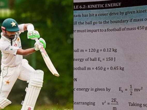 பாகிஸ்தான் நாட்டில் உள்ள ஃபெடரல் பாடத் திட்டத்தில் இந்த கேள்வி இடம்பெற்றுள்ளதாக கூறப்படுகிறது. 9 வகுப்பு இயற்பியல் பாடத்தில் இந்த கேள்வி இடம்பெற்றுள்ளது. இயங்காற்றல் (Kinetic Energy) தொடர்பான இயற்பியல் பாடத்தில் பாபர் அசாம் ஒரு கவர் டிரைவ் அடிக்கிறார். அப்போது 150 ஜூல் இயங்காற்றல் மூலம் பேட்டை வைத்து பந்தை பவுண்டரிக்கு அடிக்கும் போது பந்து எந்த வேகத்தில் பவுண்டரி கோட்டை தொடும் என்ற கேள்வி கேட்கப்பட்டுள்ளது.