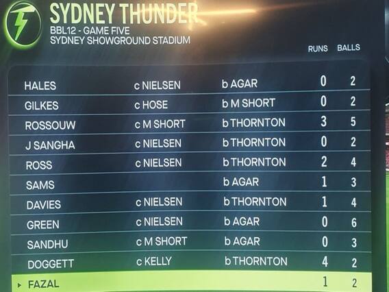 - பிக் பாஷ் லீக்கின் இத்தனை ஆண்டுகளில் தண்டருக்கு முன் எந்த அணியும் 50 ரன்களுக்கு கீழ் ஆட்டமிழந்தது இல்லை.