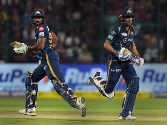 அதன் பின்னர் களமிறங்கிய குஜராத் அணி பவர்ப்ளேவில் விரத்திமான் சஹா தனது விக்கெட்டினை இழந்தார். அதன் பின்னர் இம்பேக்ட் ப்ளேயராக வந்த விஜய் சங்கர், தொடக்க வீரரான சுப்மன் கில்லுடன் இணைந்து பெங்களூரு பந்து வீச்சை துவம்சம் செய்தார். இருவரும் அடுத்தடுத்து தங்களது அரைசதங்களை விளாசினர். இருவரும் இணைந்து 71 பந்தில் 123 ரன்கள் சேர்த்த நிலையில் இந்த ஜோடி பிரிந்தது. விஜய் சங்கர் தனது அரைசதத்தினை கடந்ததும் தனது விக்கெட்டை இழந்தார். அடுத்து வந்த ஷனாகாவும் ரன் ஏதும் எடுக்காமல் தனது விக்கெட்டை இழந்து வெளியேற, போட்டி பெங்களூரு கரங்களுக்கு வருவதுபோல் இருந்தது.