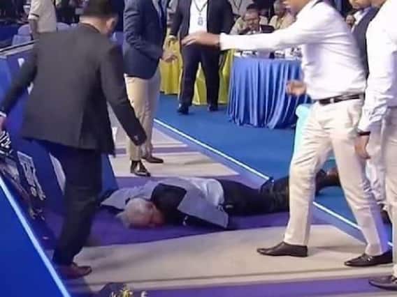 இந்நிலையில், இன்று தொடங்கிய மெகா ஏலத்தின் முதல் செஷனில் 10 வீரர்கள் எடுக்கப்பட்டனர். அதனை அடுத்து தொடங்கிய இரண்டாவது செஷனில், ஏலம் நடத்திய தொகுப்பாளர் ஹூக் எட்மெட்ஸ் திடீரென மயங்கி விழுந்தார். இதனால் அங்கு பரபரப்பு ஏற்பட்டது. கீழே விழுந்த தொகுப்பாளரை யாரும் தூக்க வராமல், அங்கிருந்த ஐபிஎல் உரிமையாளர்கள் உட்பட அனைவரும் வேடிக்கை பார்த்து நின்றனர். அதனை அடுத்து, சிறிது நேரத்திற்கு ஐபிஎல் ஏலம் ஒத்திவைக்கப்பட்டுள்ளது. மேலும், தொகுப்பாளர் ஹூக் எட்மெட்ஸிற்கு மருத்துவ உதவிகள் செய்யப்பட்டு வருகிறது.