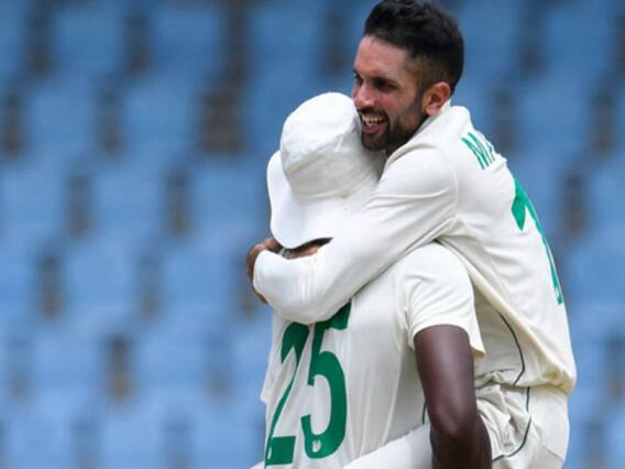 டெஸ்ட் கிரிக்கெட்டில் ஹாட்ரிக் விக்கெட் எடுத்த இரண்டாவது தென்னாப்பிரிக்க வீரர் மற்றும் முதல் தென்னாப்பிரிக்க சுழற்பந்துவீச்சாளர் என்ற சிறப்பை பெற்றுள்ளார் இந்திய வம்சாவளி கேஷவ் மகராஜ்.