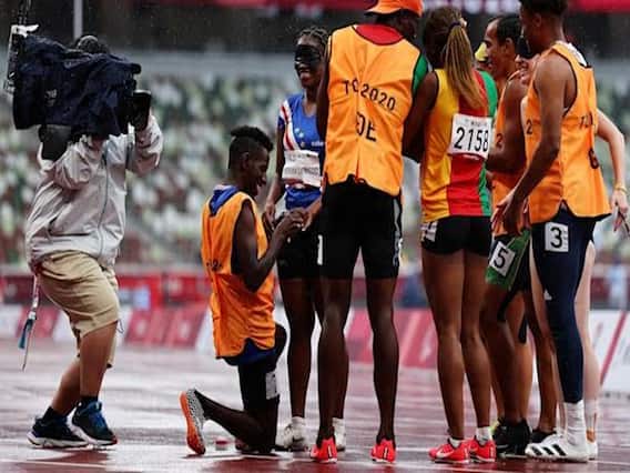 டோக்கியோ பாராலிம்பிக்கில் பார்வையற்ற மகளிருக்கான 200 மீட்டர் ஓட்டப்பந்தயம் நடைபெற்றது. இதில் பார்வையற்ற வீராங்கனைகள் ஒவ்வொருவருக்கும் ஒரு வழிகாட்டி இருப்பார். இன்று நடைபெற்ற அரையிறுதிக்கு முந்தைய சுற்றில் கேப் வெர்ட் நாட்டை சேர்ந்த கேலே நிட்ரியா என்ற 32 வயது வீராங்கனைக்கு மேனுவல் அண்டோனியோ என்பவர் வழிகாட்டியாக இருந்து உள்ளார். கேலே நிட்ரியா ஓடுதளத்தில் ஓடும்போது கைப்பிடித்து அழைத்துச் செல்வது மேனுவல் அண்டோனியோவின் பணி.