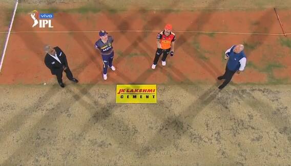 இந்நிலையில், போட்டிக்கான டாஸ் போடப்பட்டது. இதில், டாஸ் வென்ற சன் ரைசர்ஸ் ஹைதராபாத் அணியின் கேப்டன் டேவிட் வார்னர் முதலில் பவுலிங்கை தேர்வு செய்துள்ளார்.