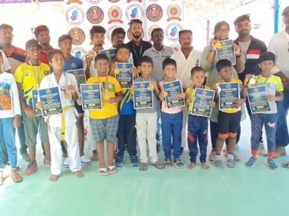 கரூரில் வில்வித்தை, கராத்தே, ஸ்கேட்டிங் என மூன்று விளையாட்டுகளில் தொடர்ந்து 2 முதல் 4 மணி நேரம் உலக சாதனை படைத்த 15 பேருக்கு இந்தியா புக் ஆப் வேர்ல்டு ரெக்கார்டு நிறுவனம் பாராட்டு சான்றிதழ் வழங்கியது.