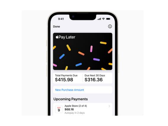 ஆறு வாரங்களுக்கு பின்னர் செலுத்தப்படும் கட்டணத்திற்கு வட்டியோ, தமாதம கட்டணமோ இல்லை என்று தெரிவிக்கப்பட்டுள்ளது.’Buy Now, Pay Later' விதியின் மூலம் 50 அமெரிக்க டாலர் முதல் 1000 டாலர்கள் வரை விண்ணப்பிக்கலாம். வாடிக்கையாளர்கள் தங்களுக்கு ஏற்ற வகையில் லோன் தொகையை திருப்பி செலுத்தலாம் என்று அறிவிப்பில் தெரிவிக்கப்பட்டுள்ளது. அதோடு ’Apple Pay' மூலம் கட்டணம் செலுத்திம் ரீ-டெயில் விற்பனையாளர்கள் மூலமும் இந்த வசதியினை பெறலாம்.